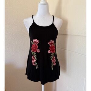 Moa Moa Tank Top Women Small Black Floral Embroidered Cami Boho Summer Rose