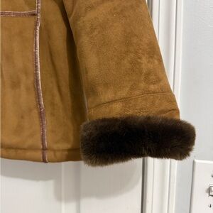 LADY HATHAWAY | Elegant Tan Teddy Jacket Faux Fur Trim Medium