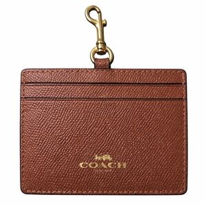Sleek Coach card holder in brown leather. Features a gold colored swivel clip for easy attachment. Perfect for everyday use.