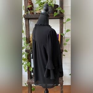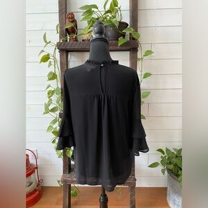 Monteau: Black Babydoll Blouse with Ruffle Collar and Tiered Ruffle Mid Sleeves