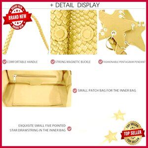 Vegan Leather Woven Tote Bag with Clutch, Shoulder Strap, Magnetic Closure