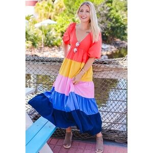 Loving this dress! A great and fun look for you to stand out! The colors and vibe is just very festive and gets you in the mood to dance around town.