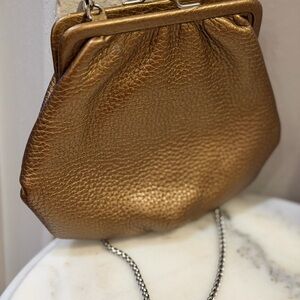 Brighton Bronze Leather Rose Embossed Clutch/Shoulder w kiss lock
