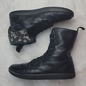 DR. MARTENS Stratford Black Leather Floral Lined Lace Up Fold Over Punk Boots 7