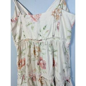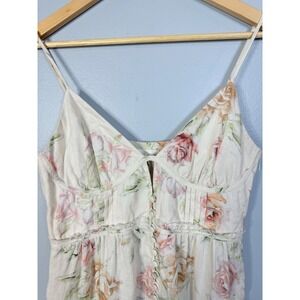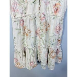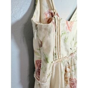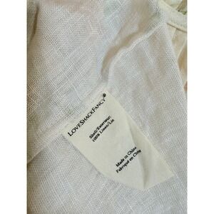 100% linen. Made in China. Machine wash. Unlined. Hidden side zipper closure. Front button loop closure. Unpadded underwire cups. Cut-out at bust. Adjustable shoulder straps