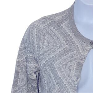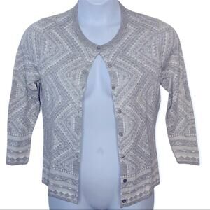 Bass Medallion Print Grey & White Cardigan Button Front Sweater Medium