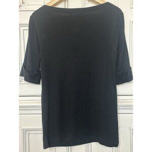 Lauren Ralph Lauren Women's Sz M Top Cuffed Short Sleeve Black Gold Zip Accent
