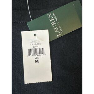 NEW Lauren Ralph Lauren W's Sz M Top Cuffed Short Sleeve Black Gold Zip Accent