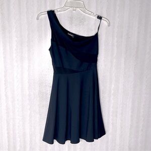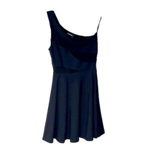 🆕 BEBE cocktail and party dress black one Shoulder with mesh accent Size XS