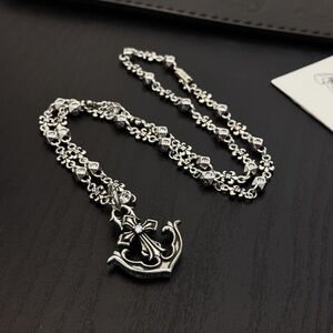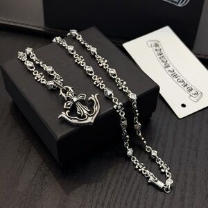 Stylish silver necklace with cross pendant. Features unique design. Includes branded packaging.
