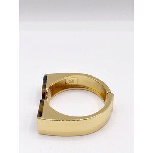 Cabi Zelda Hinged Cuff Bracelet Gold Tone Faux Tortoise Shell Chunky Modernist. Good preowned condition. Please see photos for details and measurements. Thanks for looking.