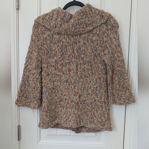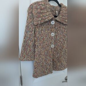 Keep yourself warm and stylish with this cozy multicolor knit jacket. Perfect for chilly days.
