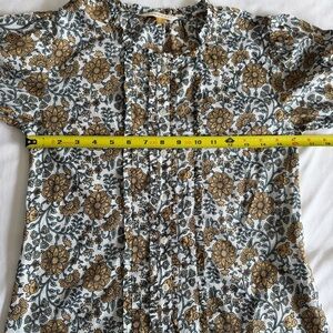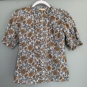 Downeast Boho Floral Print Puff Short Sleeve Button Down Blouse Top Cottagecore