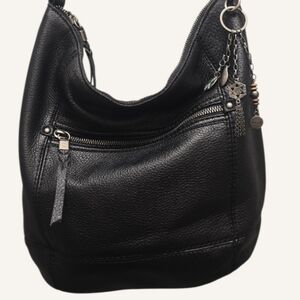 Very nice pebbled leather black hobo style shoulder bag by The Sak.