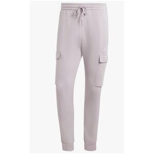 Men's purple Adidas fleece cargo jogger pants. These comfortable pants feature a relaxed fit with a drawstring waist for adjustable comfort. Two cargo pockets on the sides provide practical storage, and the ribbed cuffs offer a secure and stylish finish. Perfect for casual outings, sports training, or lounging at home.