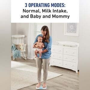 Graco baby scale featuring 3 modes. White color with blue digital display.