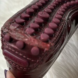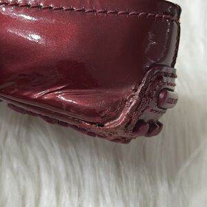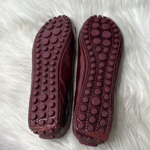 Chic ballet flats crafted of brilliant burgundy patent leather