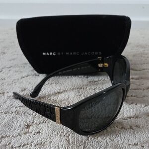 Stylish black sunglasses with gold accents. Elegant design by Marc By Marc Jacobs. Perfect for any occasion.