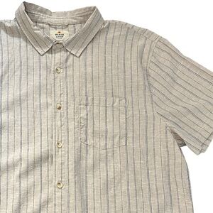 Reformation “Overland” top in green floral print, crafted from 100% silk.