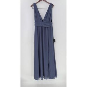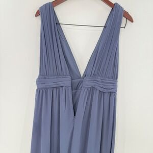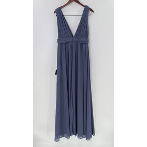 NWT Lulus Heavenly Hues Dusty Blue Maxi Dress V-Neck Chiffon Gown 43449 XL FLAW
