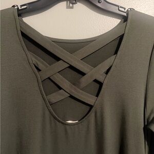 Altar'd State Green Karol Long Bell Sleeve Olive Boho Dress Criss Cross back S