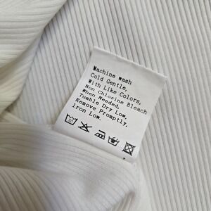 This women's size large white midi rib knit dress features a one-shoulder neckline, sleeveless design, and cutout slit detail. Perfect for parties, formal events, workwear, or business occasions, this dress is made from a comfortable and stretchy spandex, rayon, and polyester blend fabric. The dress has a pullover closure and is machine washable for easy care. With its elegant and classic design, this dress is ideal for weddings, bridal parties, or special celebrations in the spring or summer seasons.
