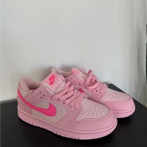Eye-catching pink shoes with signature Nike swoosh. Perfect for sports and casual wear.