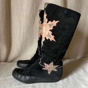 vintage Italian suede boots artisan designer southwestern appliqué lug sole rare collectible statement winter footwear