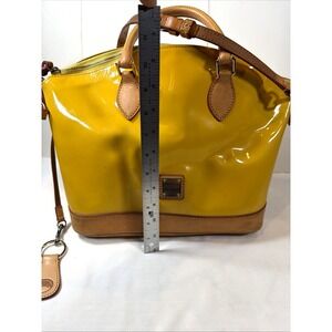 Dooney & Bourke Darcy Satchel Yellow Patent Leather Tan Leather Crossbody Bag
