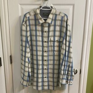 Orvis Soft Flannel Pearl Snap Men’s Button Shirt XL Cotton Western Blue Cream