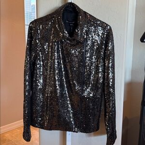 NWT COLLEEN LOPEZ SEQUIN BLACK MOTO JACKET WITH STRETCH AND POCKETS