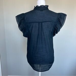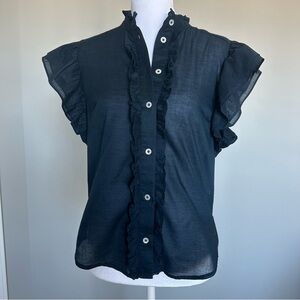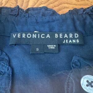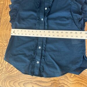 Beard Tenille ruffle button-up shirt in navy blue. Beautiful top. Lightweight and perfect for Spring/Summer. 100% Cotton. Feels like Linen. Size Small. Gently worn. Great Condition.