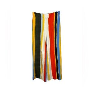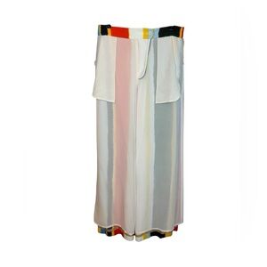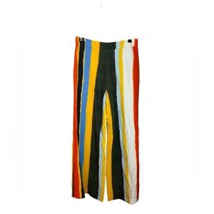 DETAILS & CARE Soft woven pants cut with a slimming high waist and dramatically billowed legs are elevated to statement status with painterly stripes in a showstopping palette.