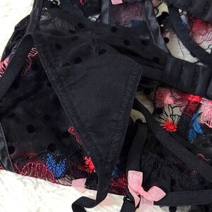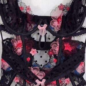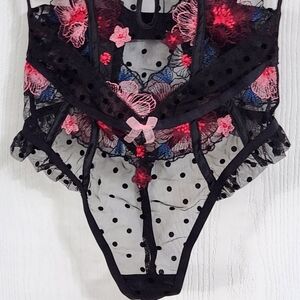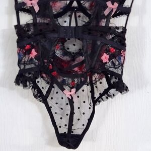 For Love and Lemons black swiss Ddot zinnia floral embroidered bodysuit teddy