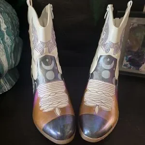 HANDCRAFTED Upcycle Cowgirl Boots HANDPAINTED Ankle Boots Block Heel Shoes 9.5