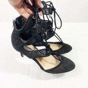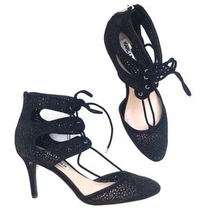 Karl Lagerfeld Paris Joslyn Womens Strappy Almond Toe Dress Heels, Black