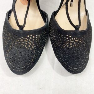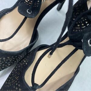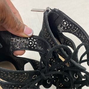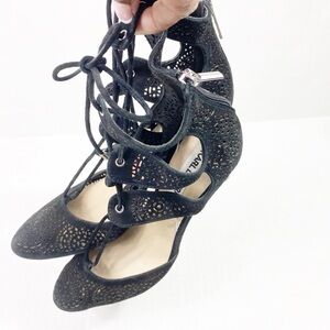 Eye-catching lasercut details cut in a soft suede Covered heel, 3.5" (90mm) Suede upper Round toe Lace-up and back zipper closure Leather lining Synthetic sole Padded insole