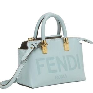 Fendi By The Way Mini Leather Small Boston Bag in light blue
