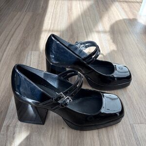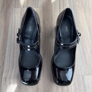 ALDO Black Patent Leather Platform Mary Jane Heels