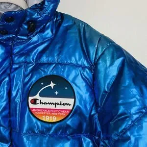 NWT Amazing CHAMPION x NASA Metallic Blue Puffer Space Jacket Puffer Coat Large