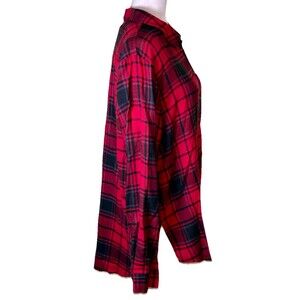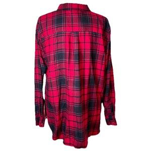 Women Cabincore Red Plaid Flannel Button Front Shirt Oversized Cozy Size XL