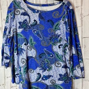 Paisley Blue Women's Top | Cotton-Cool-Go-To-Top | Size Medium | EUC