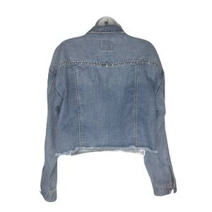 Liverpool Faded Blue Distressed Wide Long Sleeve Crop Denim Jean Jacket Medium