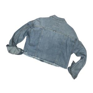Liverpool Faded Blue Distressed Wide Long Sleeve Crop Denim Jean Jacket is in very good preloved condition.