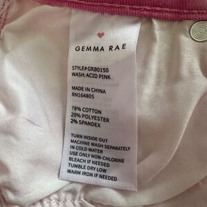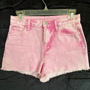 Gemma Rae, acid pink shorts with raw edge, belt loops, 5 pockets and zip button front closure. 10” rise waist to crotch, 3” crotch to hem, cotton blend excellent condition, juniors size 3