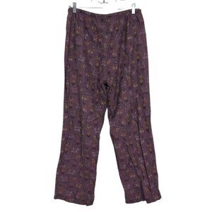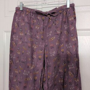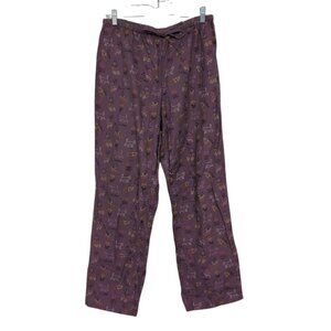 LL Bean Cat Lover Flannel Pajama Pants Womens Size Medium Purple Drawstring
