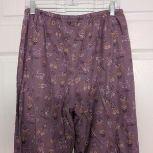 LL Bean Womens 100% Cotton Purple Cat Lover Flannel Drawstring Pajama Pants Size Medium