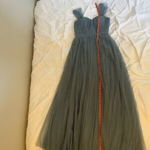Chic light blue maxi dress by Revelry. Features a flowing silhouette and elegant design. Perfect for special occasions.