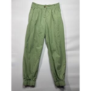 Halara Women's High Waisted Pleated Cotton Green Casual Joggers - XS (25x24.5)