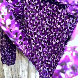 White House Black Market Purple & Gold Dot Button Sheer Blouse Women’s XS